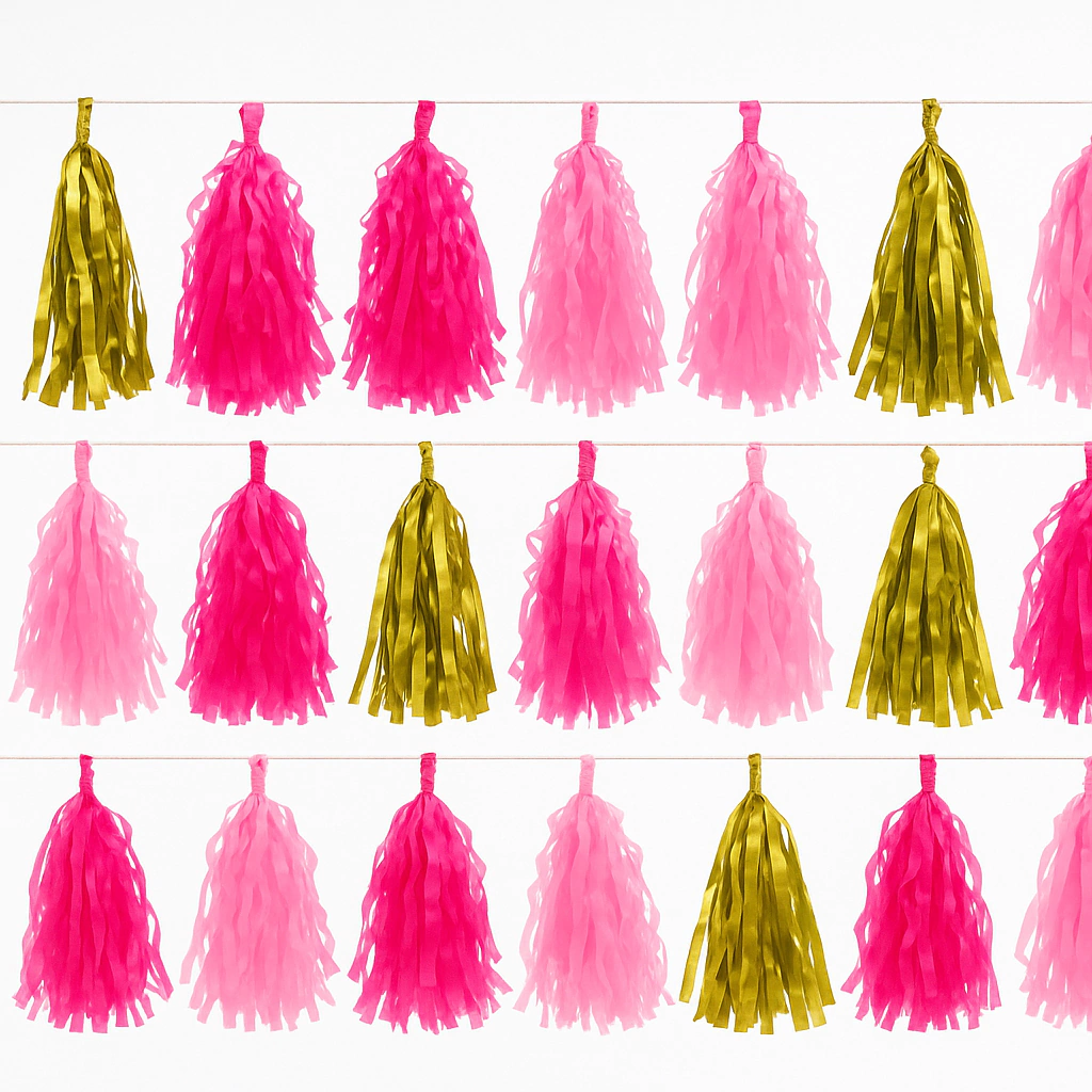 Decora tus espacios con la Borla "rosa y dorado", una pieza que mide aproximadamente 3 metros, ideal para darle un toque especial a cualquier ambiente. Su diseño elegante combina tonos suaves y dorados, aportando un estilo sofisticado y distintivo.