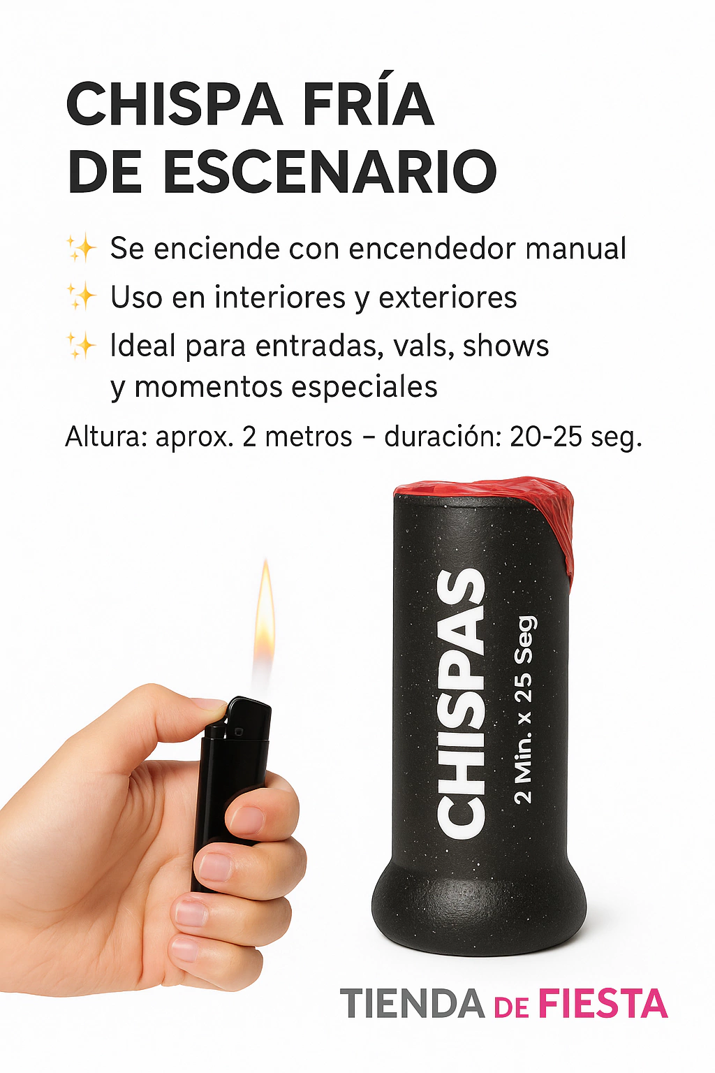 ¿Por qué elegir nuestras Chispas frías? Son fáciles de usar y añaden un ambiente festivo a tu evento. ¡No te quedes sin ellas y sorprende a tus invitados! ?