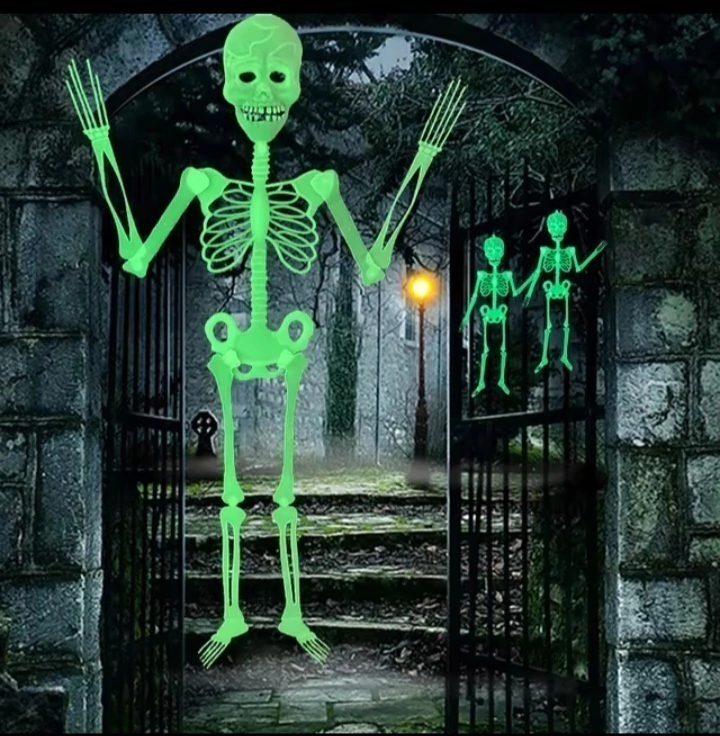 Colgante esqueleto 90 cm Dale un toque especial a tus ambientes con este colgante esqueleto de 90 cm. Para que brille, solo acércalo a cualquier foco de luz por unos minutos. Luego, en la oscuridad, se verá luminoso, creando un efecto impactante. Viene en presentación de 1 unidad, ideal para decorar fiestas, eventos o espacios temáticos. Haz que tu decoración destaque con este accesorio fácil de usar y visualmente atractivo.