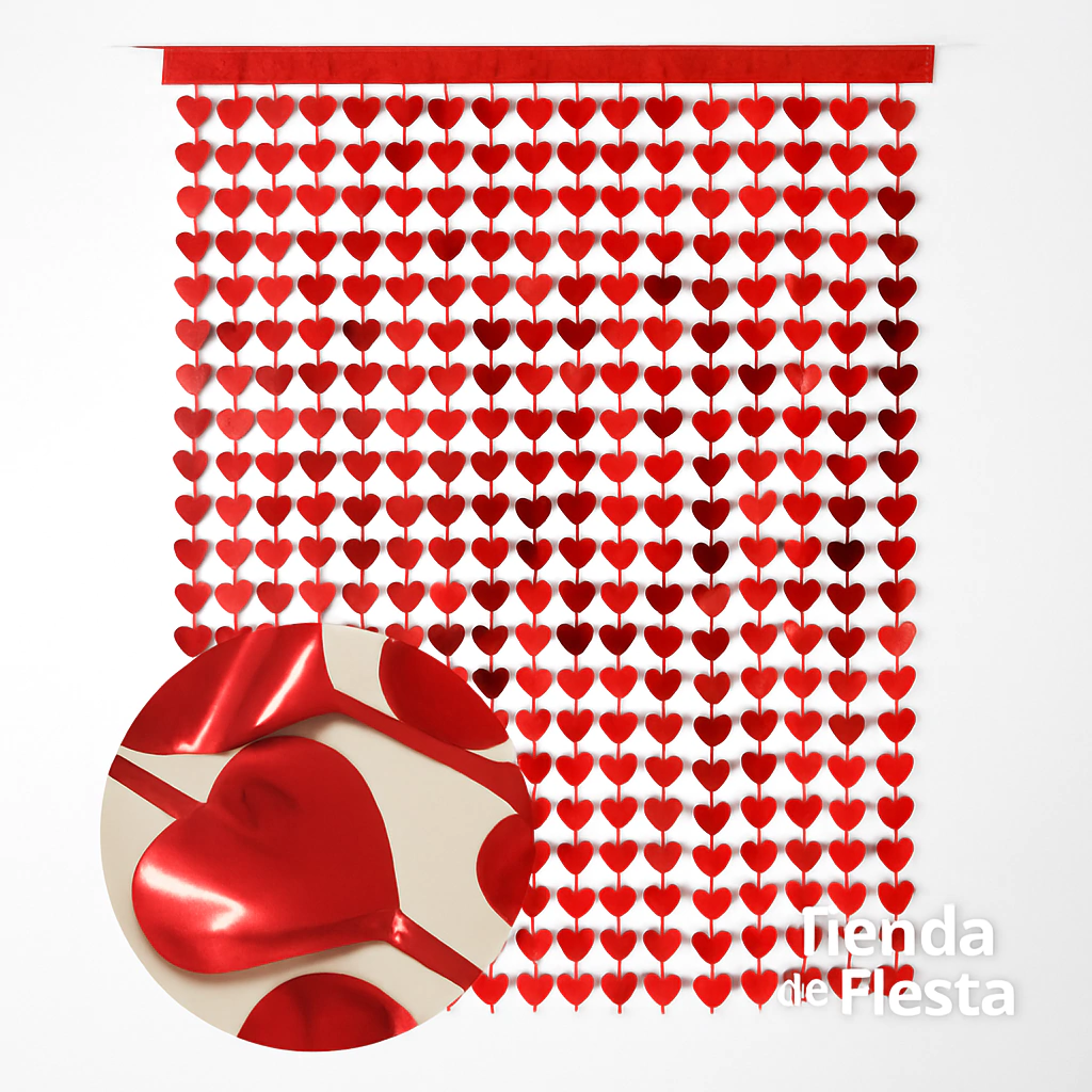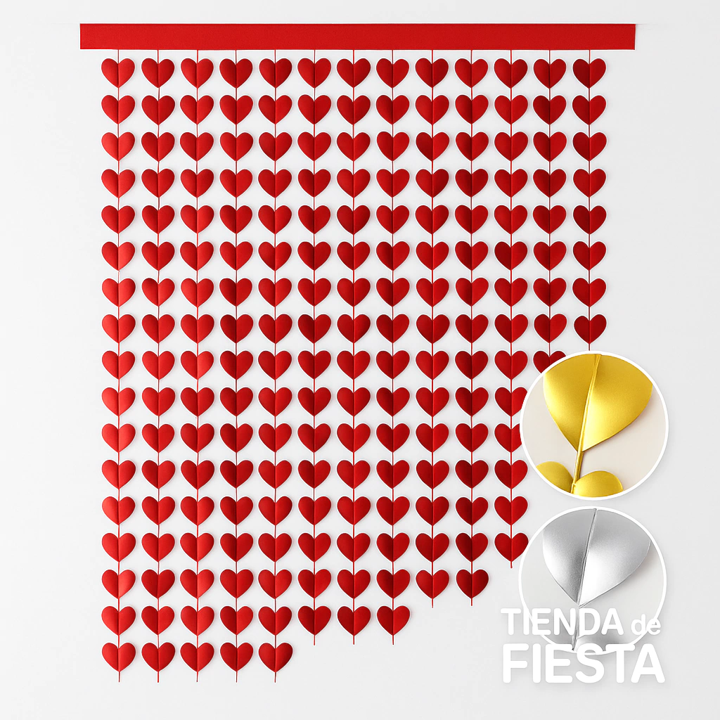 La Cortina "Corazones" mide 1 metro de ancho por 2 metros de largo, ideal para decorar tus espacios con un toque especial.