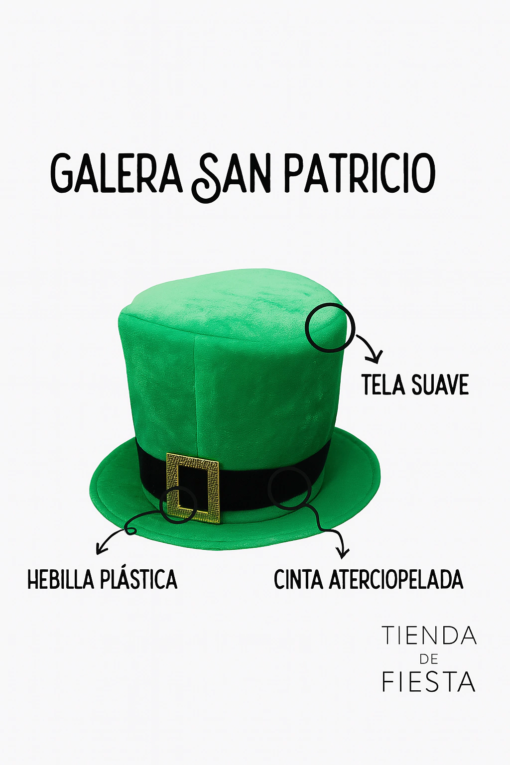 Galera San Patricio Celebra San Patricio con estilo con nuestra galera en color verde. Este accesorio festivo cuenta con un elegante detalle de hebilla dorada, perfecto para destacar en cualquier celebración.