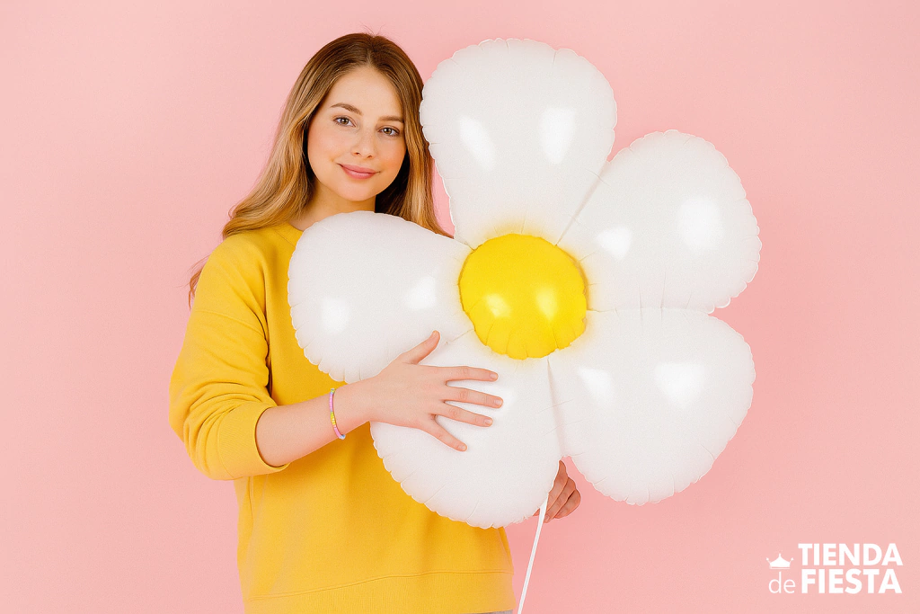 ¡Decora tus eventos con el encantador Globo Margarita! Este globo de color blanco con centro amarillo tiene un tamaño aproximado de 1 metro inflado, ideal para añadir un toque alegre y vibrante a cualquier celebración.