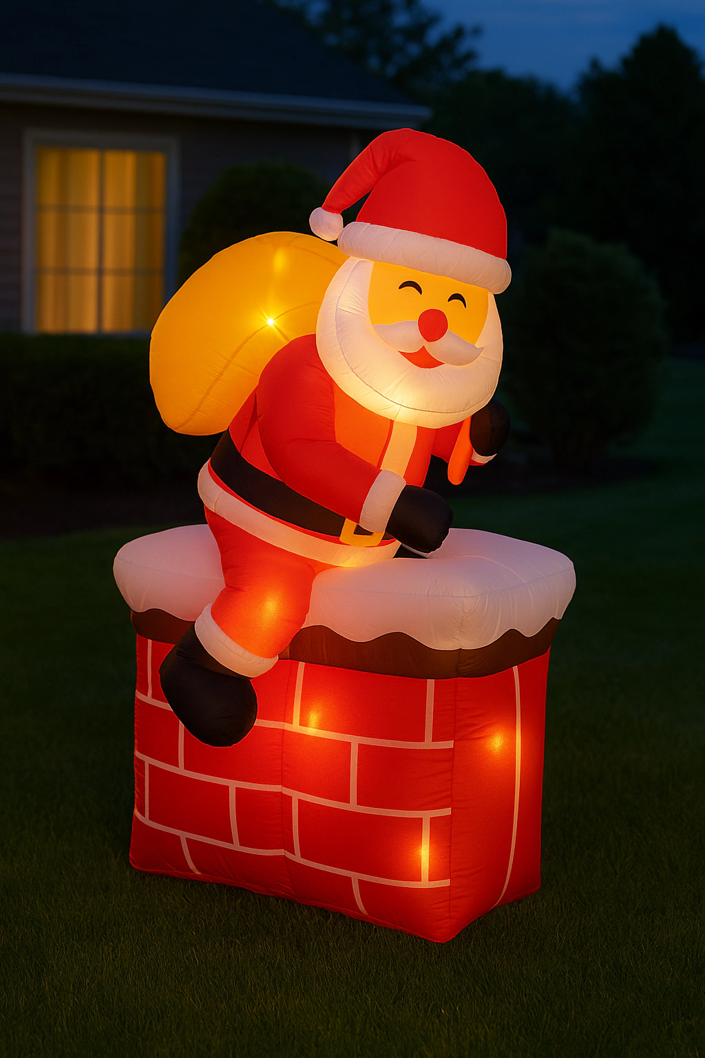 Dale un toque festivo único a tu hogar con el Adorno inflable de Papá Noel con chimenea. Este adorno combina la magia de la Navidad con un diseño llamativo y divertido, ideal para decorar tanto interiores como exteriores.