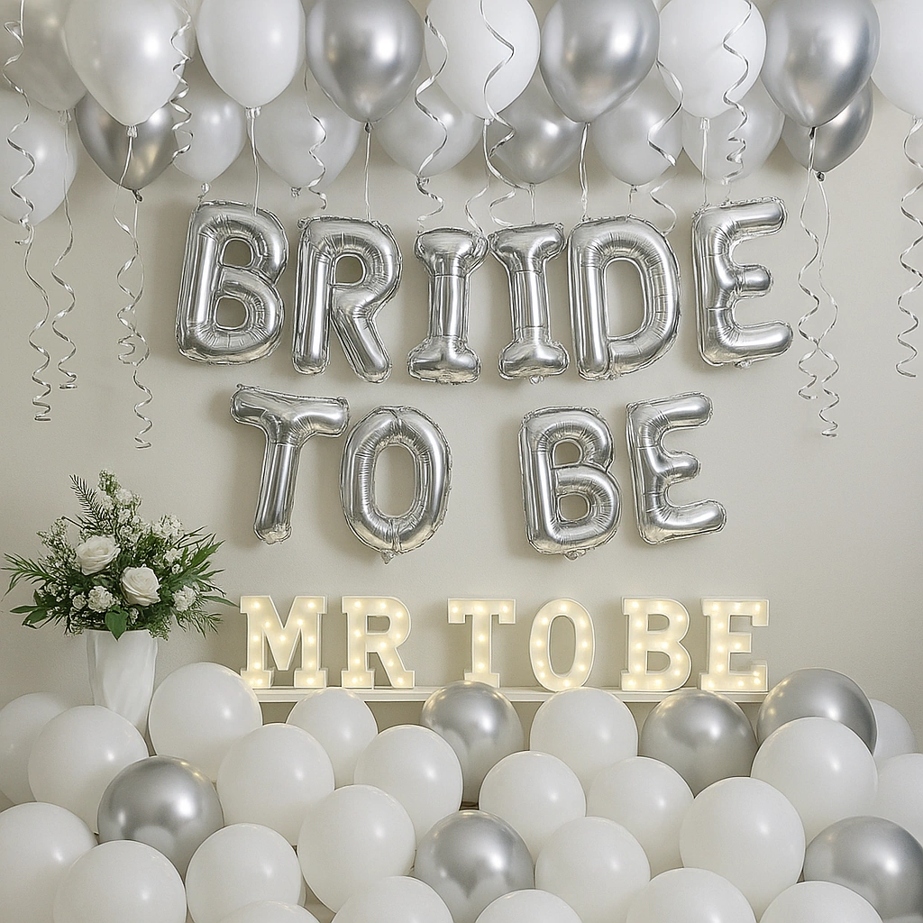- Globo letras "Bride to Be" de 45 cm, disponible en plata o dorado.