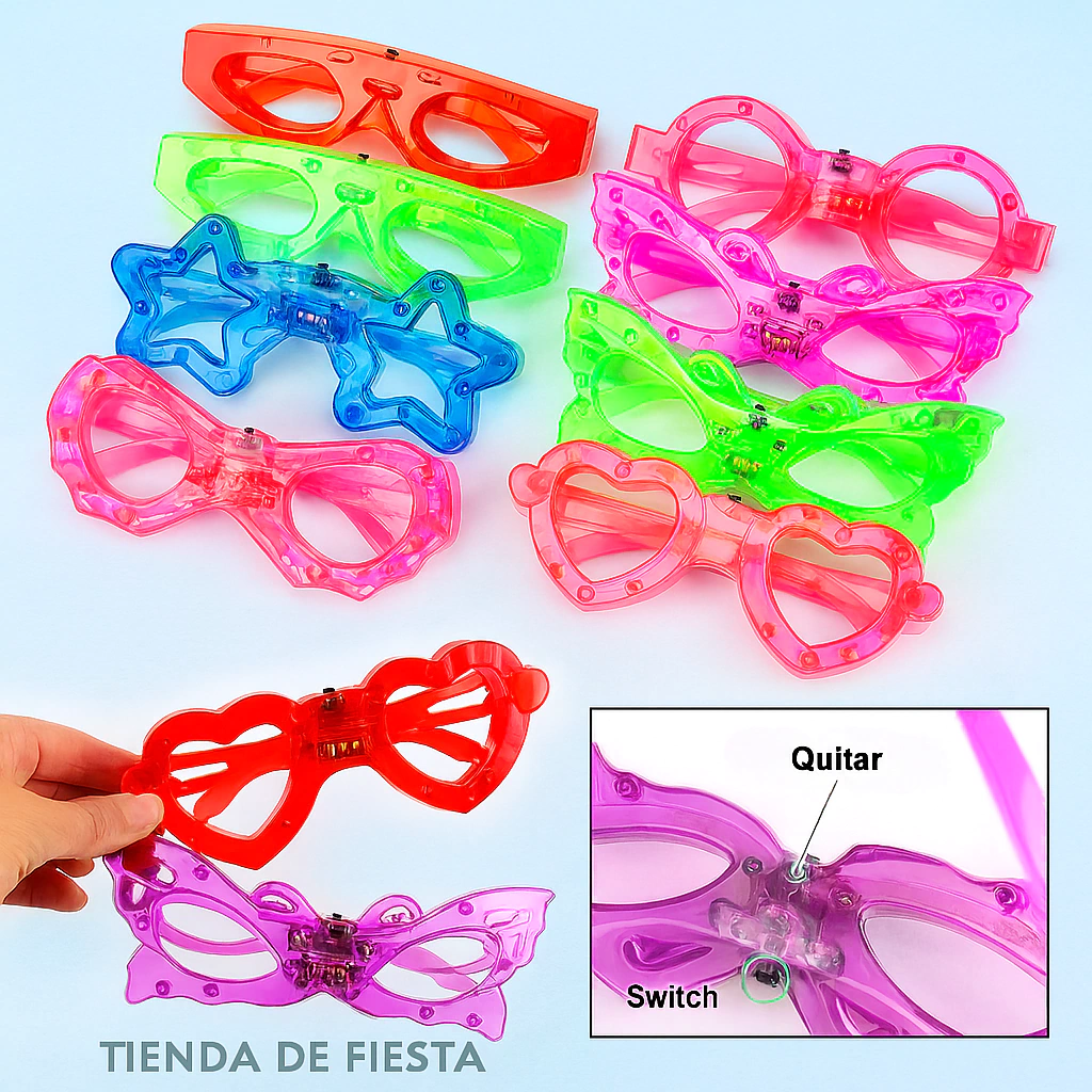 Sumate a la diversión con estos lentes que cuentan con 6 leds multicolor para un efecto luminoso único.