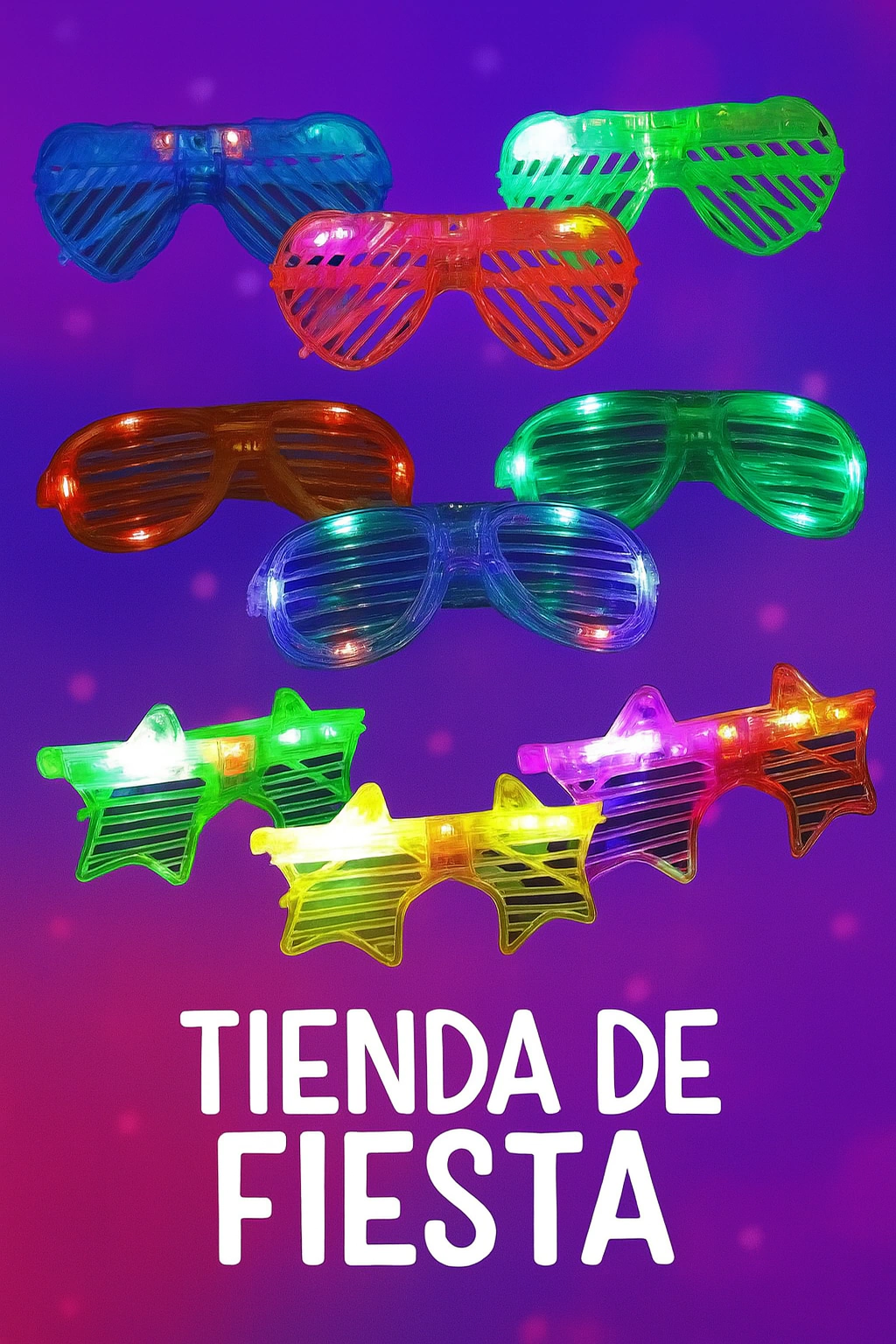 Estos lentes únicos vienen en colores y formas surtidos, perfectos para darle un toque especial a tus eventos. Con un botón de encendido y apagado, su uso es extremadamente práctico y cómodo.