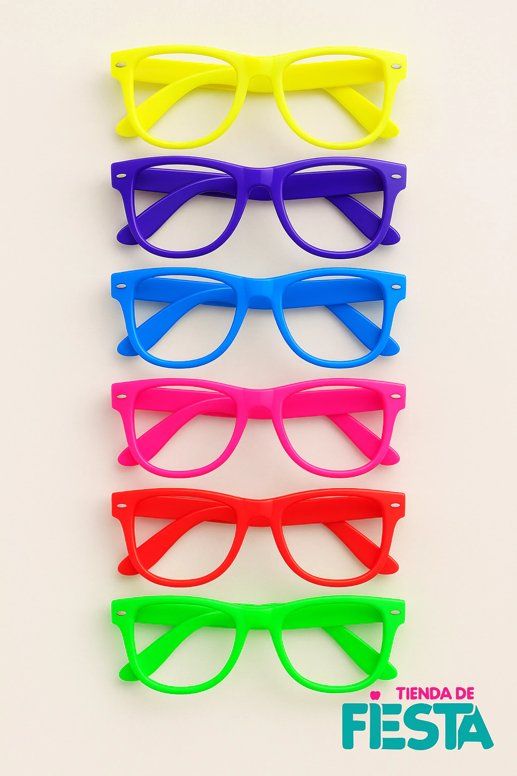 ¡Agrega un toque vibrante a tus eventos con nuestros 12 Lentes Way Fluo! Estos anteojos de plástico sin vidrio son la opción perfecta para quienes buscan destacar en cualquier celebración.