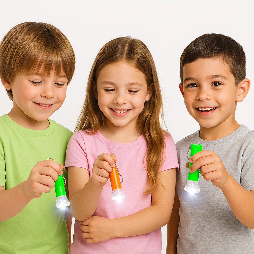 Dos funciones en un solo producto: linterna y llavero, combinando utilidad y estética. Incluyen pilas y funcionan perfectamente desde el primer uso.