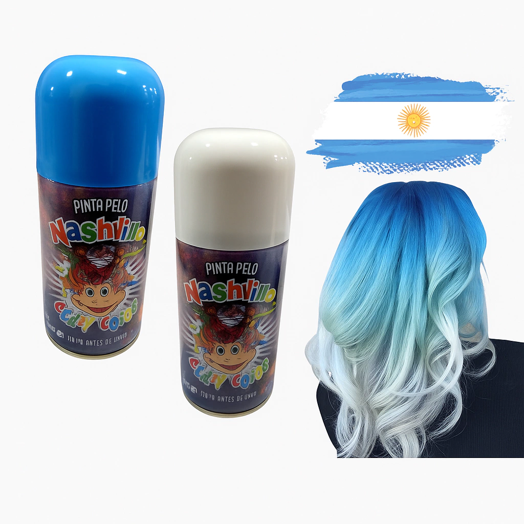 Este spray de pelo en dos colores a eleccion , blanco y celeste, es fácil de usar y totalmente lavable. Ideal para eventos deportivos, fiestas patrias o cualquier celebración donde quieras mostrar tu orgullo nacional.