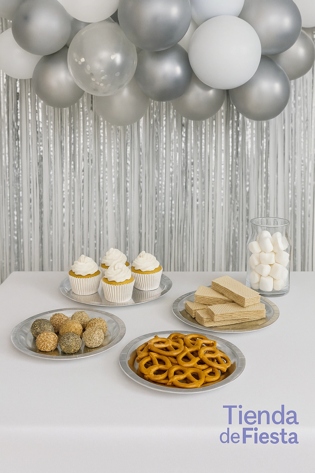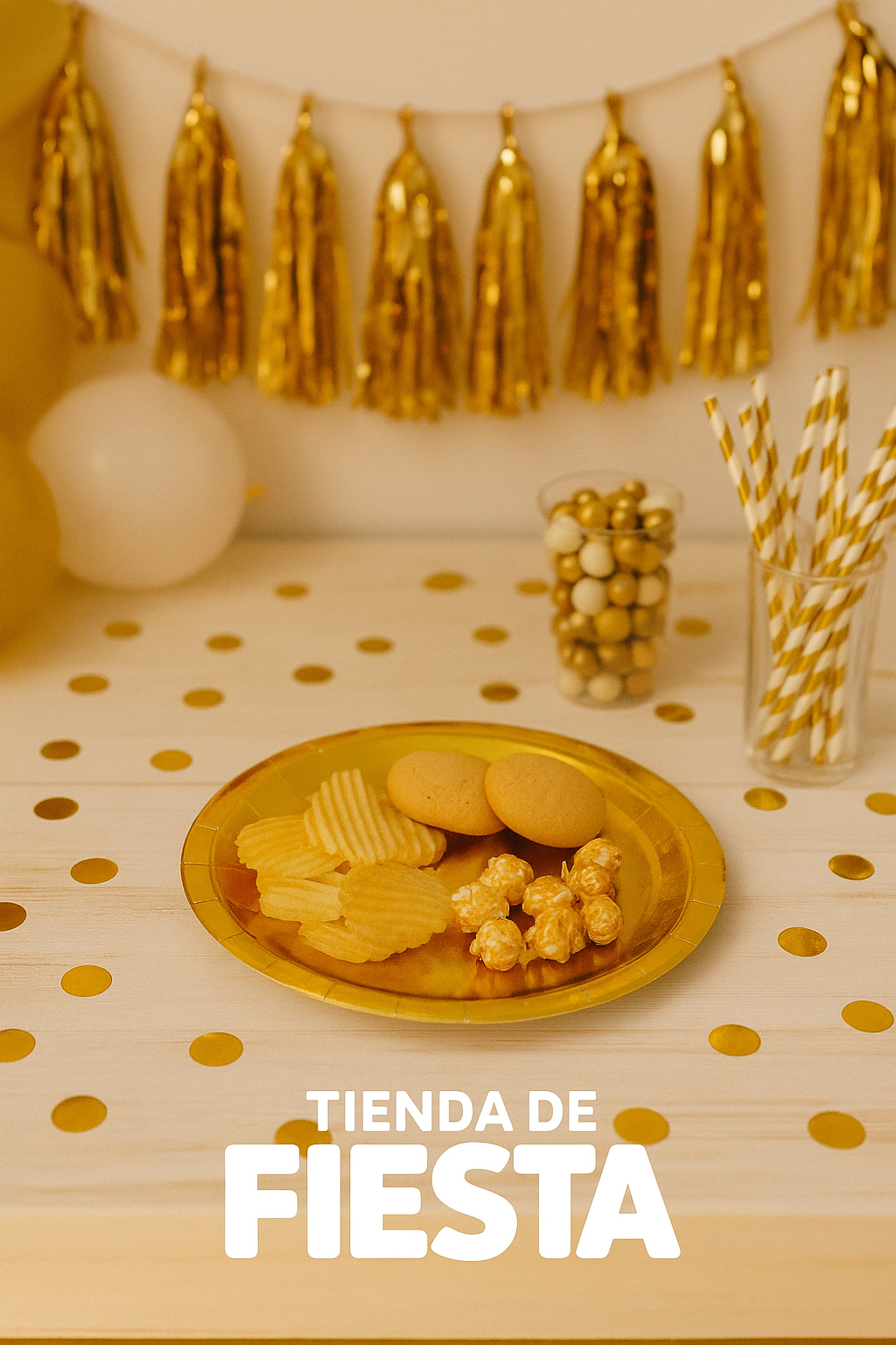 Estos platos desechables combinan un diseño metalizado elegante con la resistencia del polipapel, ideales para todo tipo de celebraciones. Con un diámetro de 17 cm, son perfectos para servir aperitivos o postres.