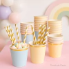 Dale un toque de elegancia a tus eventos con este pack de 10 vasos descartables de polipapel con borde dorado.