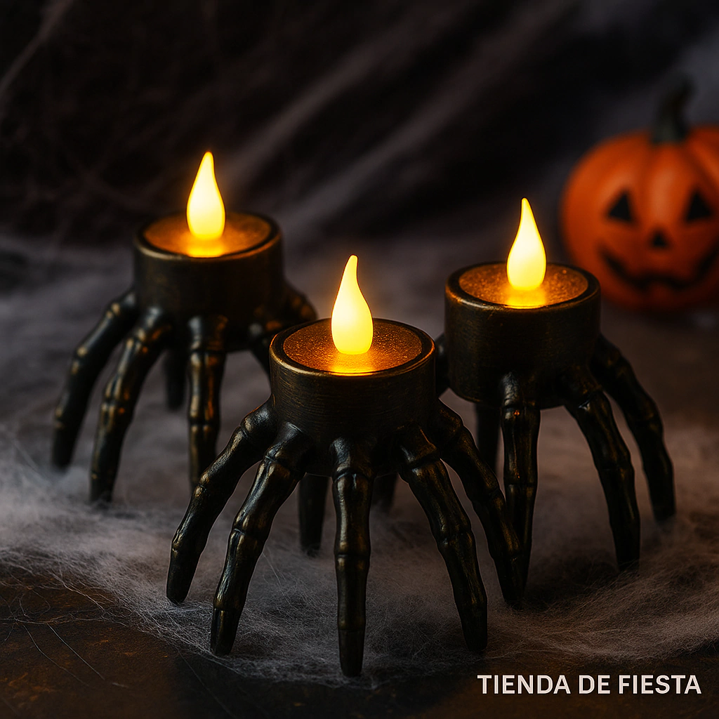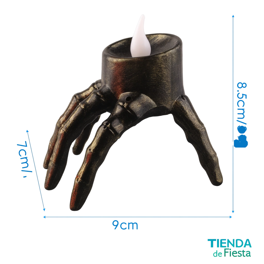 Velas "manos" LED por unidad Dale un toque especial a tus espacios con estas velas LED con diseño de manos. Miden 8.5 cm de alto y 9 cm de ancho, ideales para decorar de forma segura y original.