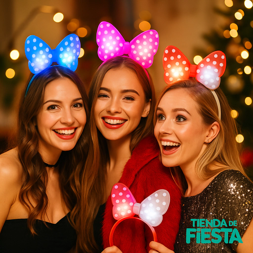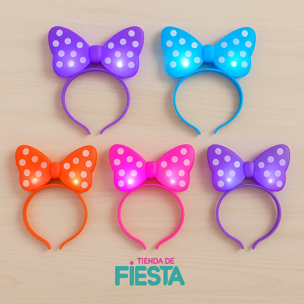 Dale un toque divertido y luminoso a tus fiestas con esta vincha temática de Minnie. Cuenta con 3 secuencias de luz para variar el efecto visual durante el evento.